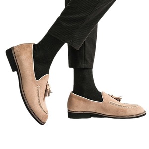 タッセルスモールレザーシューズメンズスエードローファー2025新しいスタイルボーイズアーミーグリーン英国メンズレザーシューズ