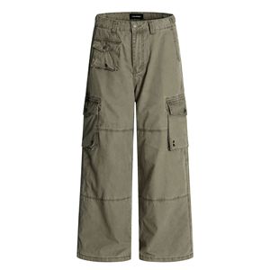 11KN アメリカンレトロ A ラインストレートオーバーオール男性と女性のための純粋な綿マルチポケットルーズな質感スリムカジュアルパンツ