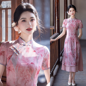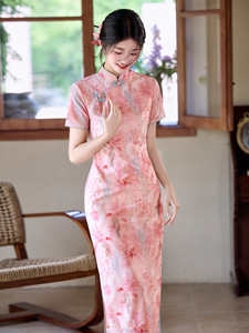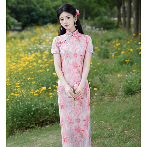 ピンクのチャイナドレス 2025 新しい夏の改良された若い女の子の新しい中国風の女性のドレスは美しいです