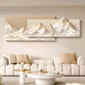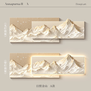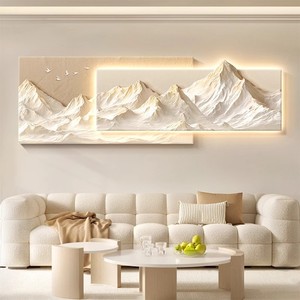 奶油风客厅大白墙装饰画日照金山画大气轻奢高级感沙发背景墙挂画