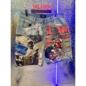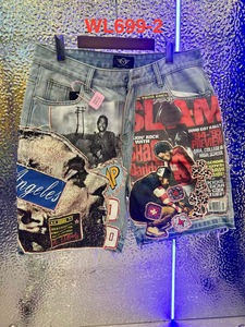 レトロトレンドステッチデニムショートパンツトレンドキャラクタープリントステッチファッショナブルな爆発的な注目WL699-2