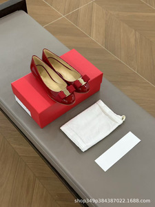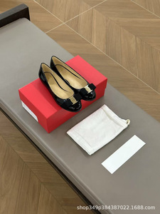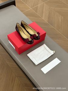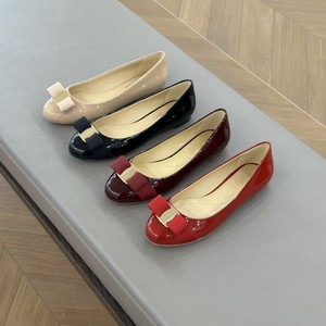 広東省産の牛製品! SF パテントレザーボウシューズ浅い息気質作業靴レトロフラットバレエシューズ女性用