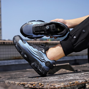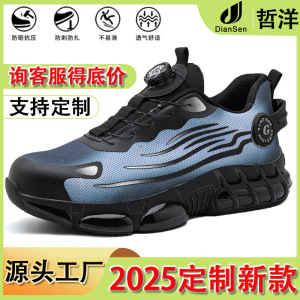 クロスボーダー無料靴ひも労働保護靴男性怠惰な回転ボタン労働保護靴耐摩耗性靴軽量防臭安全靴