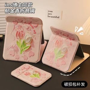 かわいい折りたたみミラーデスクトップデスクトップスタンド学生寮女性旅行ポータブル化粧鏡小