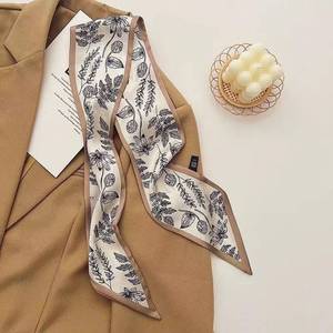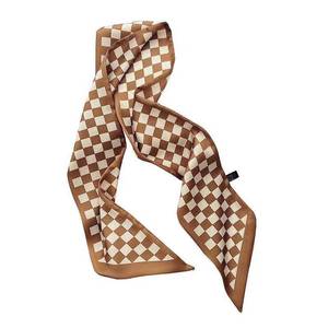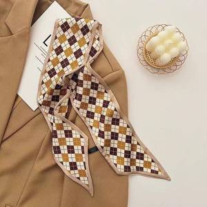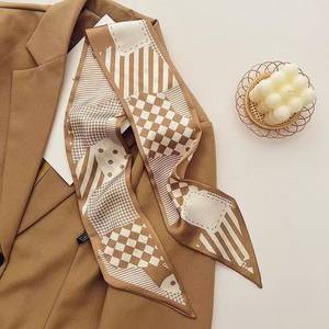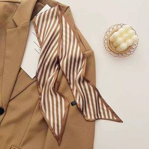 法式复古咖色系丝巾优雅细窄长条尖角领巾百搭多功能扎发绑包飘带