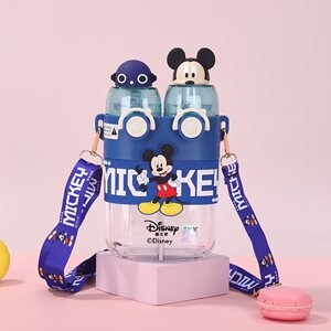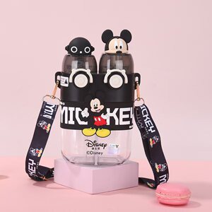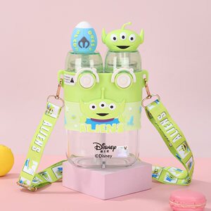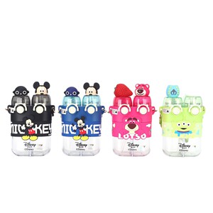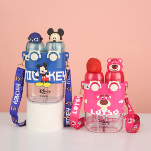 見栄えの良いダブルコンパートメントとダブルドリンク子供用プラスチックカップ、持ち運び可能なストロー付きのクリエイティブなカップ、かわいい漫画のスポーツボトル