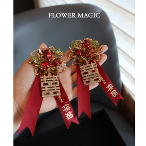 新しい中国風のラインストーンダブルハピネスザクロマルチベビー多幸気赤い結婚式新郎新婦の両親のコサージュ