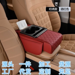 4-in-1 多機能車のアームレストボックスパッド、高さ調整パッド、車の中央アームレストティッシュボックス収納袋、ウォーターカップホルダー