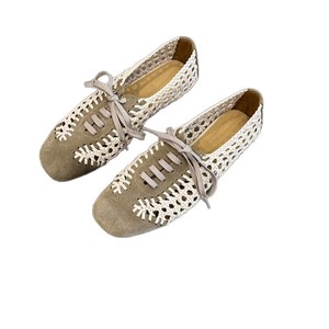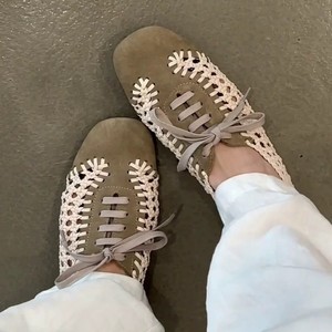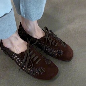 羊皮版时尚简约女外穿舒适低跟圆头小众交叉系带百搭透气休闲鞋