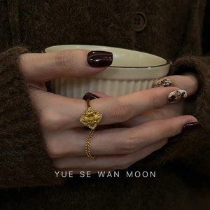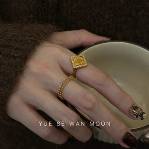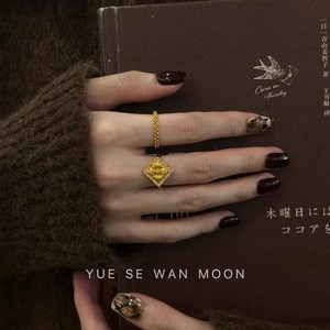 中古神韻ブラッシュゴールド四つ葉のクローバー菱形スクエアリング女性用新しいオープン人差し指リング非退色リング