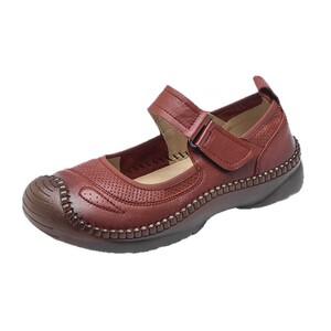 2025秋中高年女性向け第一層牛革浅口靴、手作りレトロスタイル平底牛筋ソフトソールマザーズシューズ