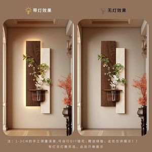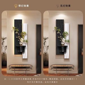中古风玄关装饰画水培绿植入户走廊过道尽头挂画客厅墙壁复古灯画