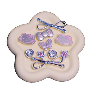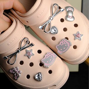 新しいインスタイルファッショナブルでかわいいシルバーフラッシュハローキティリボン下駄靴花靴バックル靴アクセサリー DIY アクセサリー