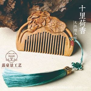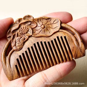 白檀の蓮の花型櫛、携帯用小型マッサージ櫛、経絡櫛、中秋節、重陽節、感謝祭の贈り物