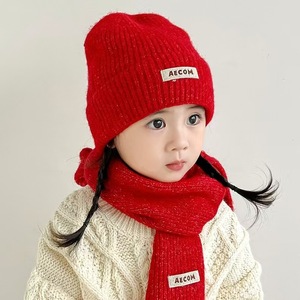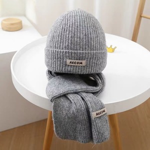 子供用帽子とスカーフセット、シンプルなレターエッジ、新しい無地、カジュアルで多用途、秋冬の暖かいウールニット