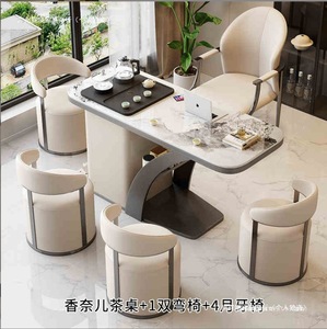 高端岩板阳台茶桌现代简约烧水壶一体家用茶台功夫泡茶桌椅椅组合
