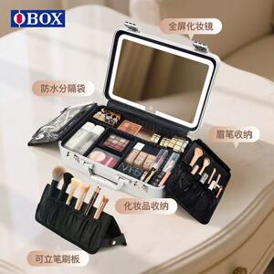 OBOX 16inch ポータブルメイクアップケース、ライトミラー付きプロのメイクアップアーティスト、メイクアップアーティスト専用メイクアップケース、トロリーにセット可能