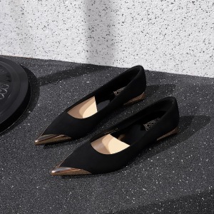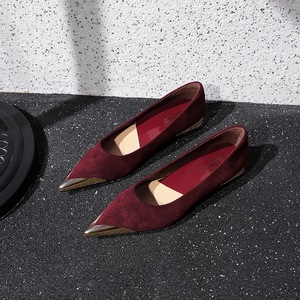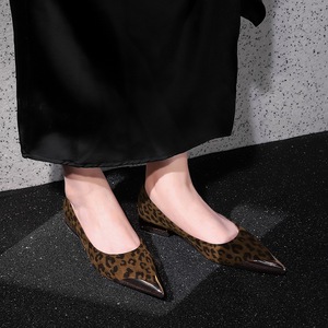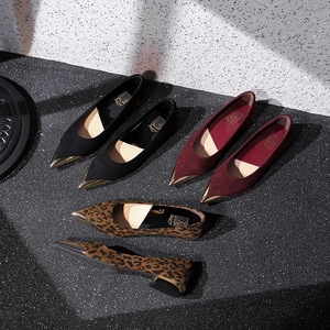 83977 ヨーロッパとアメリカンスタイルのファッションカラーブロックメタルポインテッドトゥフラットヒール女性用厚いヒールスエードヒョウ柄浅い口の女性用靴
