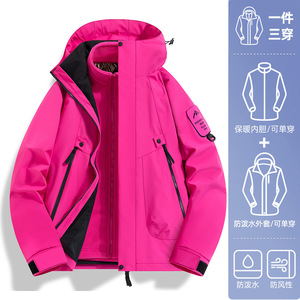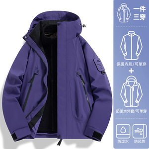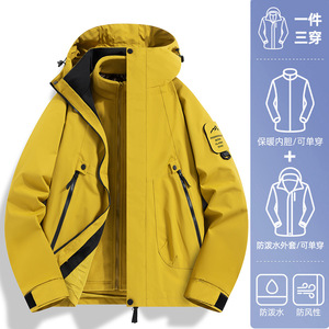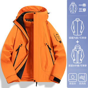 マウンテントレンドジャケット、防風防水スリーインワンダウン登山ジャケット、ベルベットサーマルジャケット、カスタムプリントロゴ