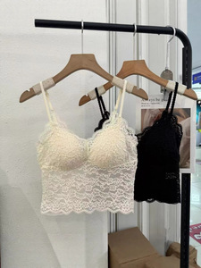 ネットセレブ人気のフレンチレースサスペンダー、白、純粋な欲望スタイル、漏れ防止バック、外でも内でも着用可能、スリム、胸パッド付き、美しい背中