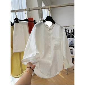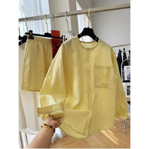 高級ラミー長袖シャツ+ショートツーピースファッションスーツ、女性の夏の美しい着用、薄手のセット