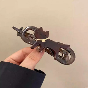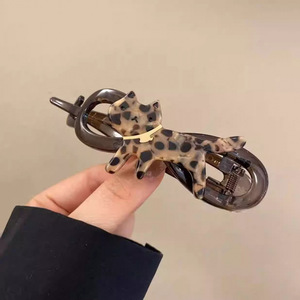 キュートでかわいいヒョウ柄の猫ツイストクリップ、女性用のハイエンドの後頭部ワンライングリップクリップ、ファッショナブルで多用途