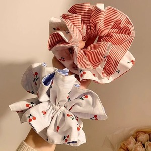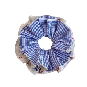 チェリー二重層プリーツヘアゴム赤チェック柄ダブルブルーチェック柄牧歌的なスタイルのヘアゴムポニーテール女性の帽子