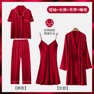 【愛は潮のように】2セット価格 カップル用パジャマ 赤色 干支年 結婚式用パジャマ 胸パッド付き 冷感シルク 通気性