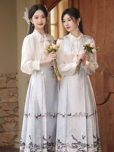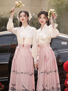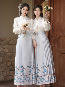 新中式伴娘服2025新款马面裙套装汉服长袖国风姐妹团礼服平时可穿