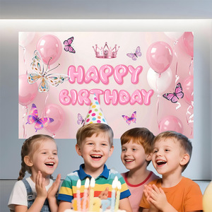 国境を越えて人気の高いハッピーバースデー背景布、英語の文字装飾布、誕生日パーティー装飾シーンレイアウト小道具