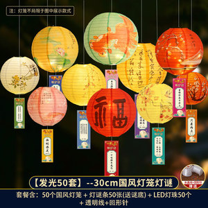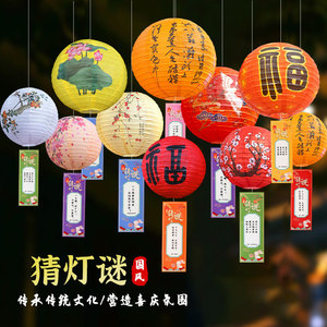 中秋节商场活动装饰猜彩色灯笼灯谜挂纸字谜语条卡片节日氛围布置