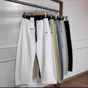 春夏a1シーズン新作スリムで多用途な韓国風シンプルなカラーブロックのウエストゴム巾着ルーズコントラストカラーストレートカジュアルパンツ女性用