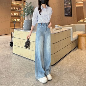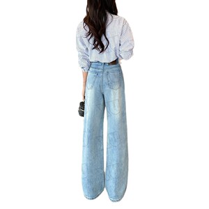 7449 Q 春夏の新ハイウエストスリムルーズパンツクラウドブルーデザインワイドレッグジーンズ女性のレトロなドレープ