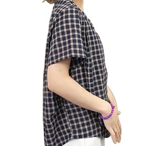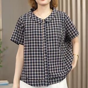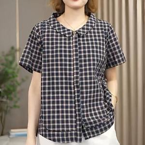 プラスサイズの女性の 2025 夏の新しい半袖ブルーチェック柄カジュアルシャツ西洋スタイルルーズスリムチェック柄シャツ