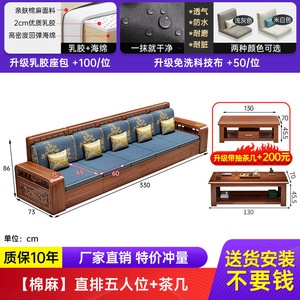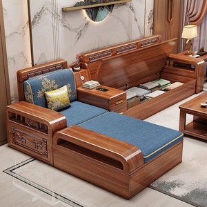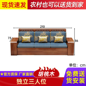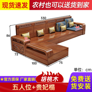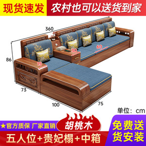 中式胡桃木实木沙发贵妃塌组合家用冬夏两用大小户型客厅全套家具