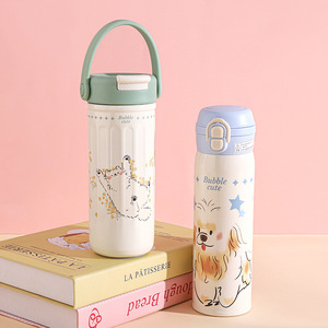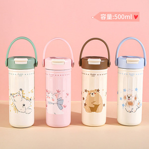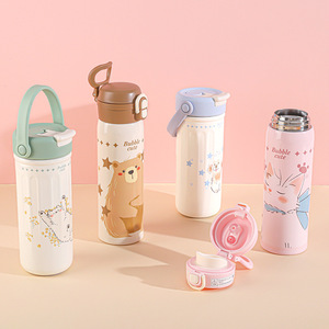 2025 新漫画断熱カップポータブルスプリング蓋ストローカップ 304 ステンレス鋼直接飲料高価値学生ウォーターカップ
