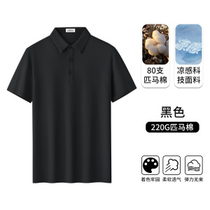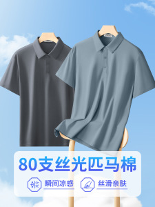 80 カウントシルケットピマコットンメンズポロシャツ夏の新アイスシルククールシルケットコットンラペル半袖 Tシャツ男性用