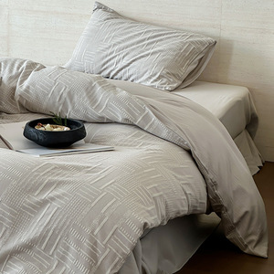 モダンスタイル シンプルコットン 4点セット 立体ジャガード 純綿 掛け布団カバー ベッドシーツ ライトグレー 四季兼用寝具