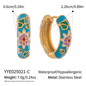 レトロな中国風のパーソナライズされたオイルドロップイヤリング 18K ゴールドメッキステンレス鋼エナメル釉彫刻イヤリング女性用