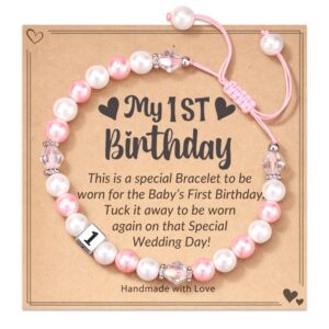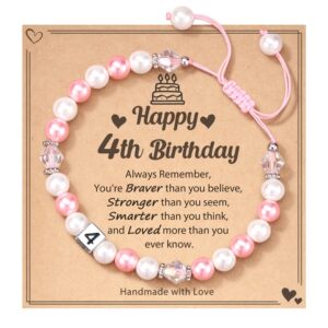 ステンレス鋼スクエアビーズホワイトパールピンクパール誕生日ブレスレット誕生日ギフト子供のクラスメートや友人のブレスレット