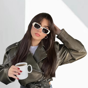 跨境外贸欧美女装2025秋复古翻领仿皮衣夹克机车款外套PU速卖通TE