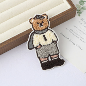 かわいいクマの刺繍布ステッカー、ベビー服と子供服のアクセサリー、粘着パッチステッカー、バッグ装飾刺繍ラベル、DIY布ステッカー