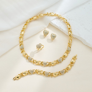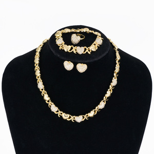 欧美跨境经典饰品四件套爱心镀金吊坠项链耳环手链戒指首饰套装女
