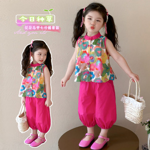 套装韩版夏季印花女童中大童公主风套头超萌潮款两