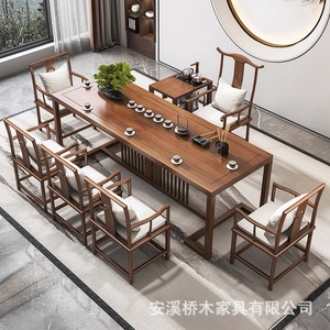 無垢材茶テーブル リビングルーム茶台 新中式禅意 オフィス用茶テーブルと椅子セット 羅漢ベッド 禅意スタイル