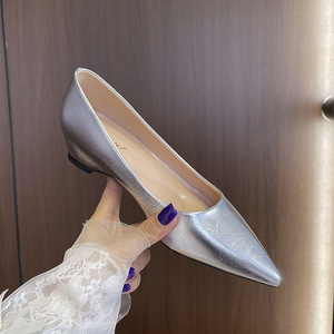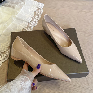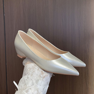 6318-19 小柄な女性のための身長を伸ばす靴、ウェッジヒール、ポインテッドトゥ、通勤用、多用途の浅い口の作業靴、ソフトレザー 3CM