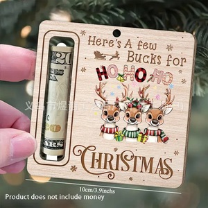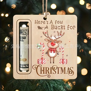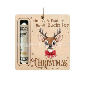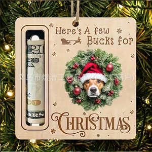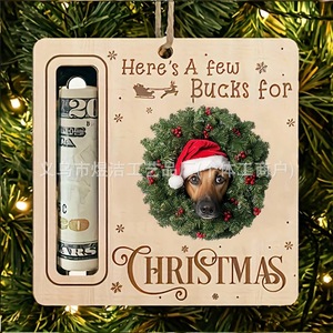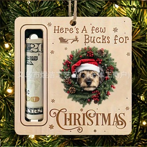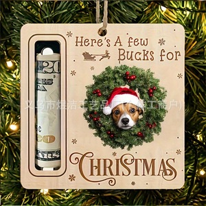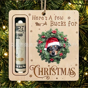 跨境圣诞节装饰圣诞树钱夹鹿圣诞老人小狗木质挂件礼品