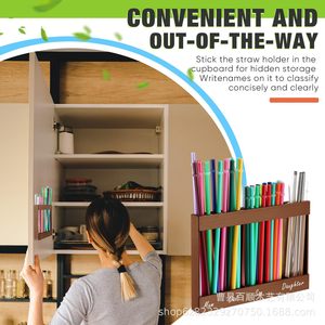 木製ストロー収納ボックスキャビネット両面テープストロー撹拌棒整理ボックスドリンク使い捨てストローボックス