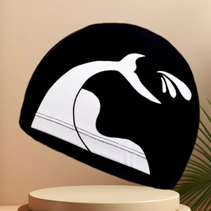 夏の間ずっと楽しんでください: 黒のクジラの尾はユニセックスで落ちません - ファッショナブルなプリントの通気性のある布製スイミングキャップは伸縮性が高く、通気性があり、頭を締め付けません。