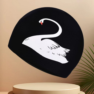夏の間ずっと楽しんでください:黒の背景に白い白鳥はユニセックスで落ちません - ファッショナブルなプリントの通気性のある布製スイミングキャップは伸縮性が高く、通気性があり、頭を締め付けません。